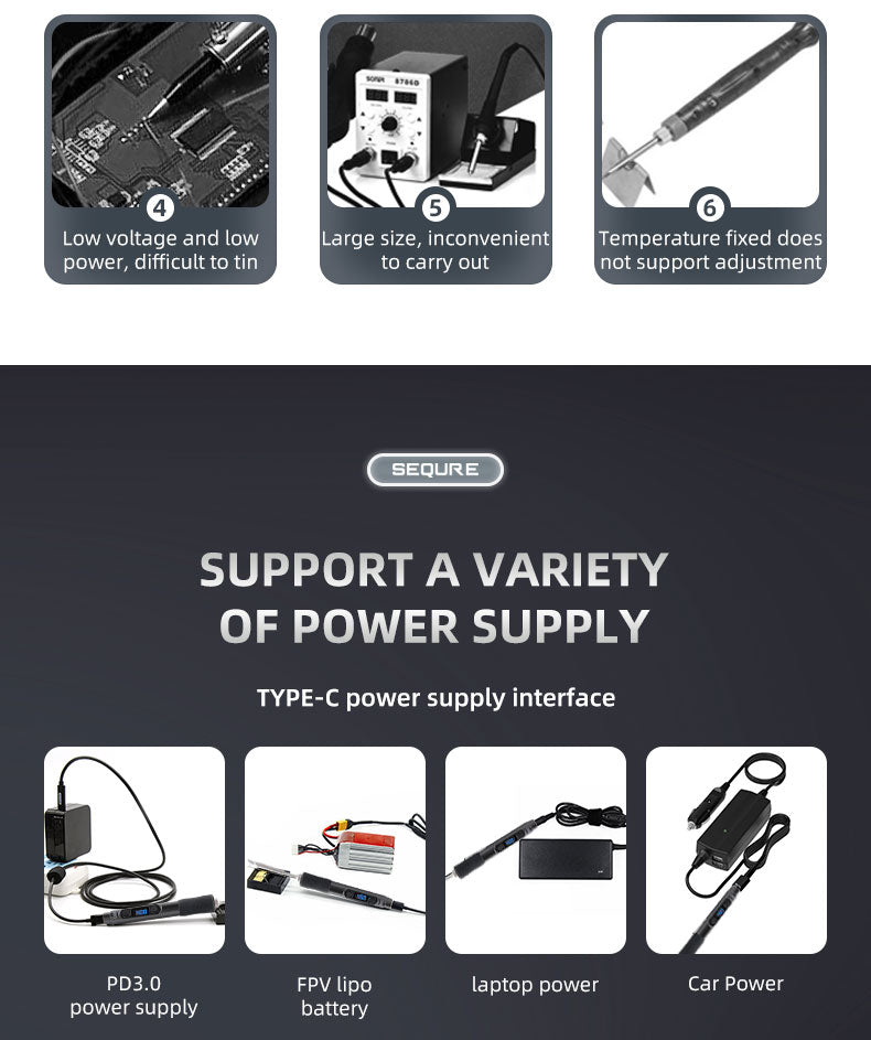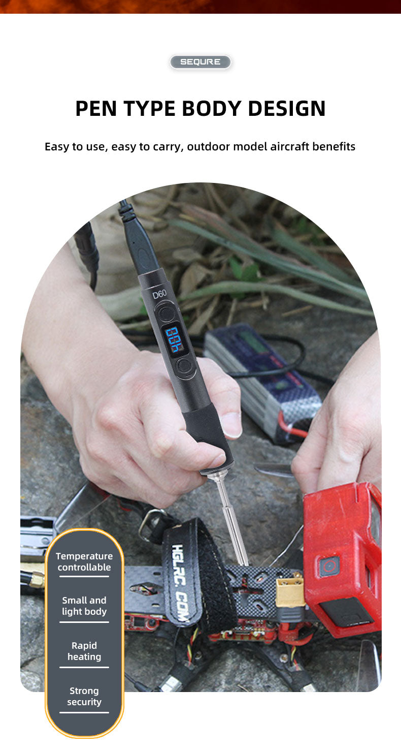 SEQURE D60B Pro Portable Mini Constant Temperature Electric Soldering Iron Supports PD3.0 FPV Lipo Battery Powered Outdoor Repair Welding Tool Outdoor Maintenance Welding Tool